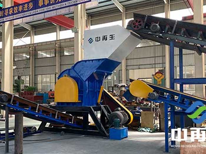在工作流程上,中再生科技生產的廢鋼破碎機通過上料輸送裝置將廢舊金屬送到進料口,通過壓輥和粗碎軸的破碎加工將廢舊金屬進行初級破碎,經過初級破碎后的廢金屬料進入設備主機腔,在高速大扭矩電機的驅動下,主機轉子上的錘頭輪流擊打進入主機腔內的金屬料通過襯板與錘頭之間的空間,待破碎金屬在破碎腔內可得到有效的細碎,將待破碎金屬撕裂成合乎規格的破碎物后,從篩網中流下來。破碎物料經過空氣回旋分揀系統,可以將金屬上殘留的油漆、鐵銹、非金屬上雜質進行分離,在設備底部卸出的物料再通過輸送設備運送到集料點,在此過程中物料中含有的非磁性物料在磁選機的作用下被分選卸出生產線落到非磁性物料料堆。另外整個系統裝有除塵裝置,將生產過程中產生的破塵污染危害降低。該設備主要有產量高、能耗低、效率高、出料細碎均勻等優點。并且在使用該設備時,噪聲低、無污染,使用簡單、維護方便。